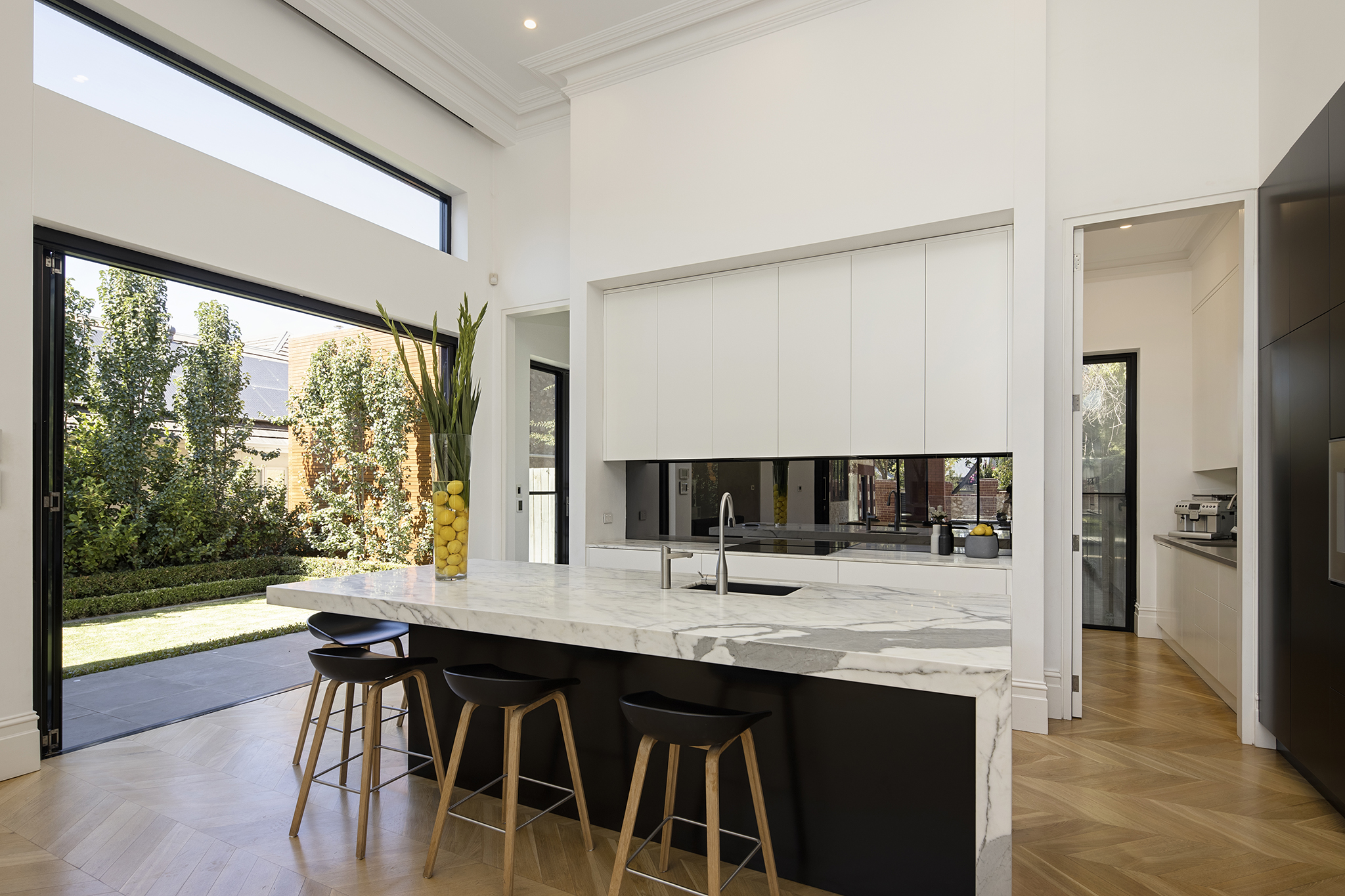 Aluminium bifold windows provide a unique and elegant solution for seamlessly blending a kitchen's interior with its outdoor environment. When fully opened, these windows offer unobstructed views that enhance the sense of space. Our bifold window can be either single or double-glazed, ensuring an excellent fit for your needs. Additionally, you can enhance your entertaining space with a roll-down flyscreen option, keeping pests at bay while maintaining a pleasant flow between indoor and outdoor areas.